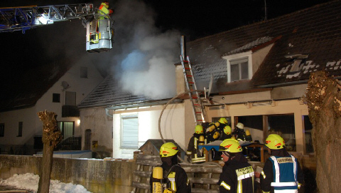 jedoch große Teile des Ziegeldachs von den beiden Feuerwehren
